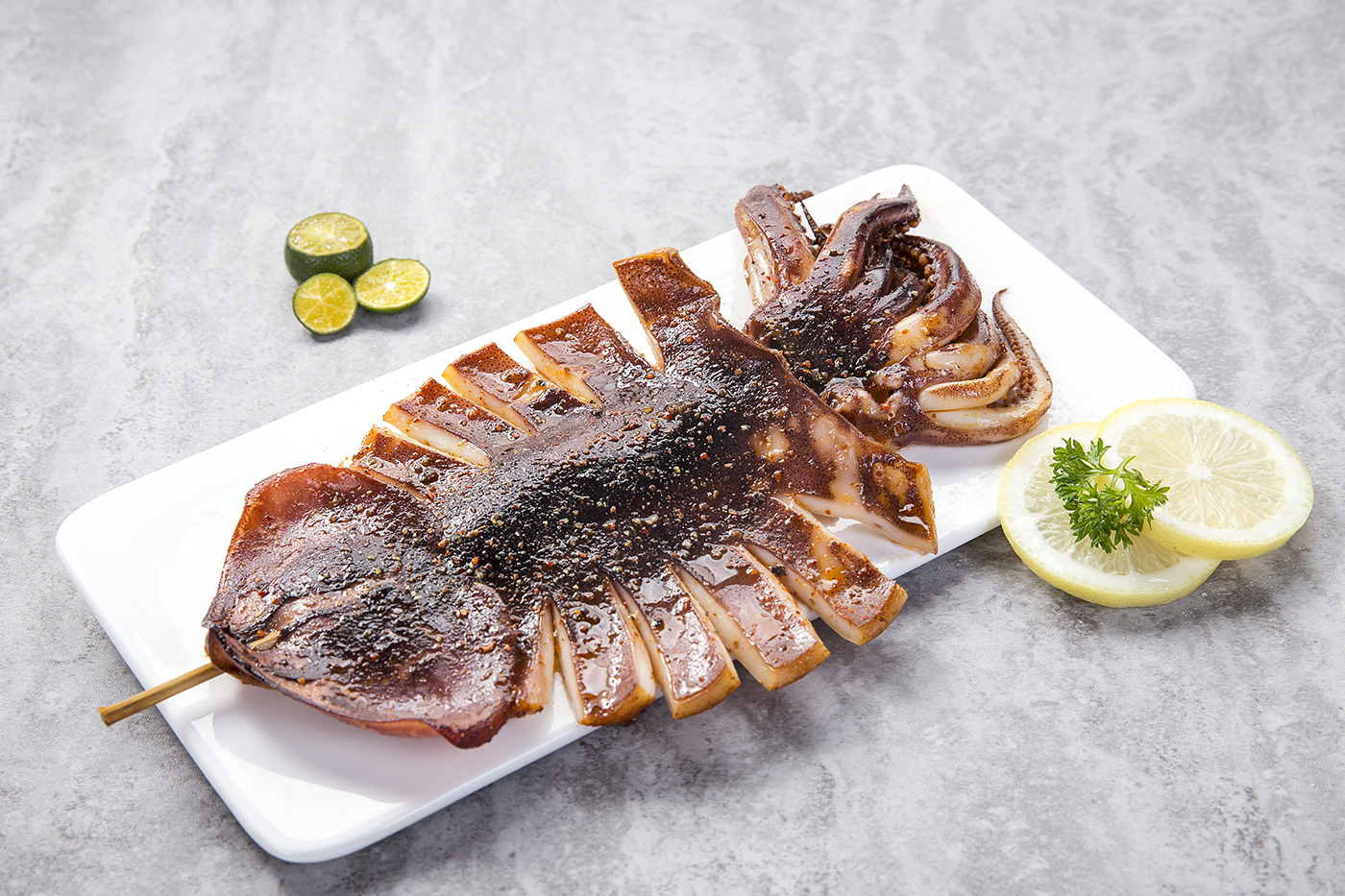 整只大西洋深海魷魚,搭配秘制燒烤醬料炭烤,微波均可,操作簡單,美味經(jīng)典
