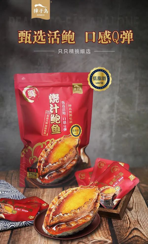 燒汁鮑魚(yú)采用獨(dú)立小包裝,更符合現(xiàn)代人的飲食習(xí)慣,口袋里的小零食,揣兜里隨時(shí)開(kāi)吃。