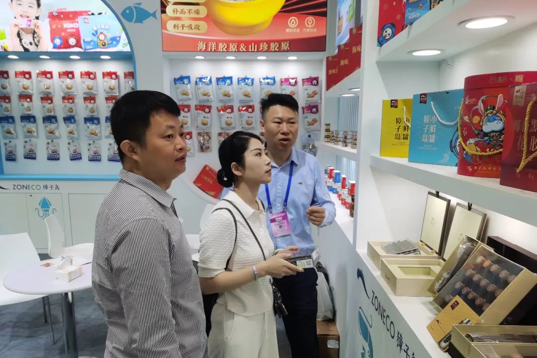 獐子島集團展位往來客商絡(luò)繹不絕,紛紛在駐足、品鑒、洽談。