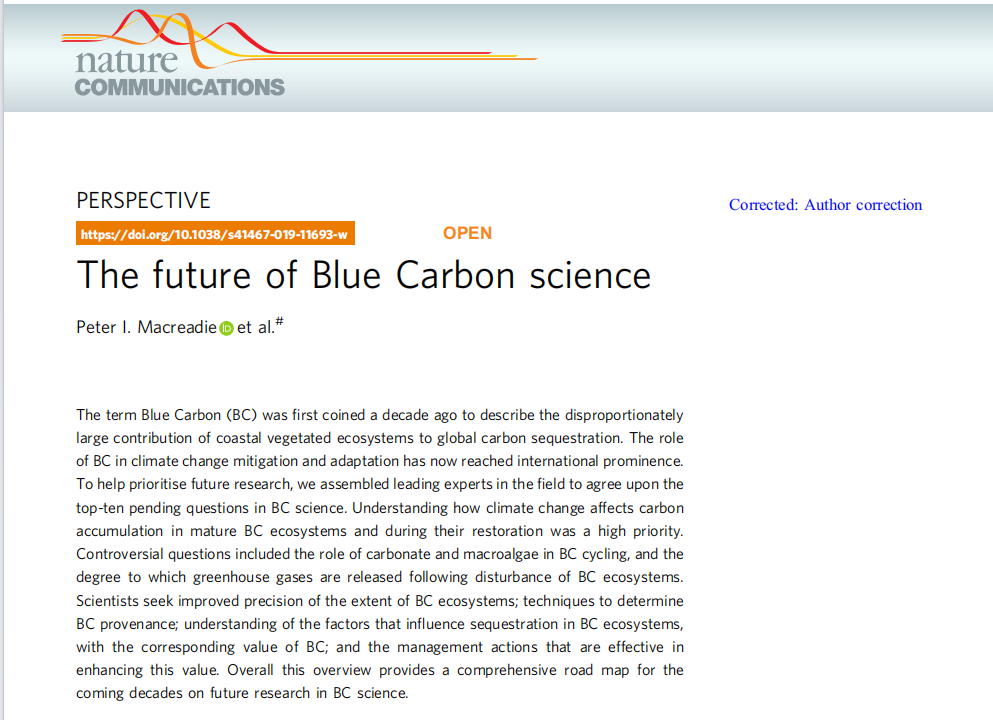 藍(lán)碳(Blue Carbon, BC)這一術(shù)語(yǔ)是十年前首次提出的,用于描述沿海有植被的生態(tài)系統(tǒng)在全球碳儲(chǔ)存中的不成比例的貢獻(xiàn)。如今,藍(lán)碳(BC)在氣候變化減緩和適應(yīng)中的作用已經(jīng)受到國(guó)際關(guān)注。為了幫助確定未來(lái)研究的重點(diǎn),本文匯集了該領(lǐng)域的領(lǐng)先專家,達(dá)成了藍(lán)碳科學(xué)領(lǐng)域前十個(gè)待解決問題的共識(shí)。了解氣候變化如何影響藍(lán)碳生態(tài)系統(tǒng)中的碳積累以及在其恢復(fù)過(guò)程中的情況成為了重點(diǎn)問題。有爭(zhēng)議的問題包括碳酸鹽和大型藻類在藍(lán)碳循環(huán)中的作用,以及在受干擾的藍(lán)碳生態(tài)系統(tǒng)中溫室氣體釋放的程度。全球科學(xué)家們正致力于尋求提高藍(lán)碳生態(tài)系統(tǒng)的范圍精確度;確定藍(lán)碳來(lái)源的技術(shù);理解影響藍(lán)碳生態(tài)系統(tǒng)中碳封存的因素,以及藍(lán)碳的相應(yīng)價(jià)值;以及有效提高這一價(jià)值的管理行動(dòng)??偟膩?lái)說(shuō),這一概述為未來(lái)幾十年藍(lán)碳科學(xué)研究提供了全面的路線圖。