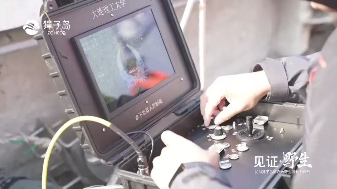 大連理工大學水下機器人團隊是第三次參加冬捕節(jié),今年他們帶來了“赤甲紅號”水下機器人,在海底大展身手。