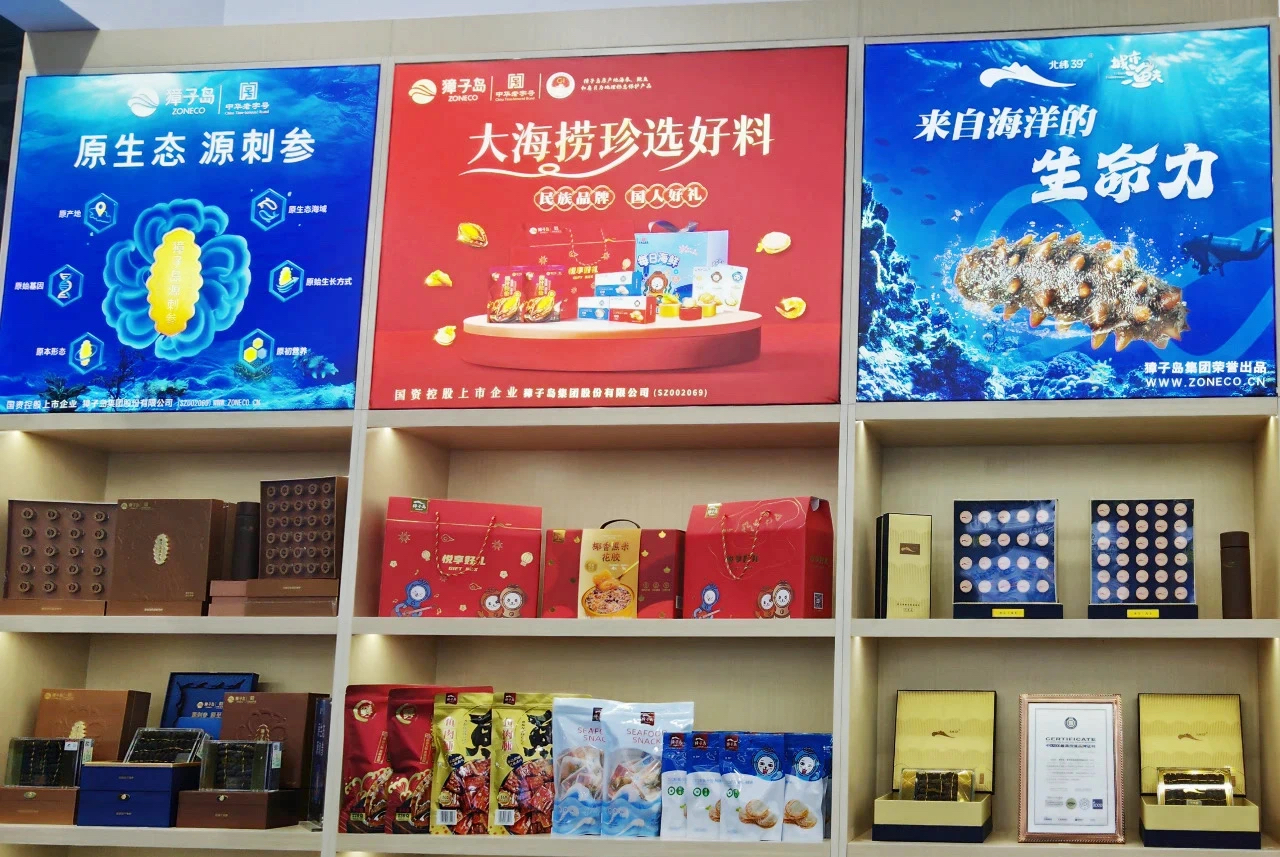 獐子島地處北緯39°,是國(guó)家級(jí)海洋牧場(chǎng)示范區(qū),也是中國(guó)海珍品原產(chǎn)地。這里地理、氣候和海域自然條件優(yōu)越,水溫低、鹽度高、餌料充足、營(yíng)養(yǎng)豐富、海域開放、遠(yuǎn)離大陸。憑借獨(dú)有的地理區(qū)位與水質(zhì)環(huán)境,實(shí)現(xiàn)了刺參、鮑魚、扇貝、海膽、海螺、生蠔、魚類、藻類等生物多樣性價(jià)值。在獐子島集團(tuán)展位,鮑魚、扇貝、海螺、生蠔、紫石房蛤等原產(chǎn)地活鮮品均刻有或掛有“獐子島”品牌,打造差異化產(chǎn)品體驗(yàn),強(qiáng)化消費(fèi)者對(duì)高端海珍品溯源和獐子島品牌的全新認(rèn)知。