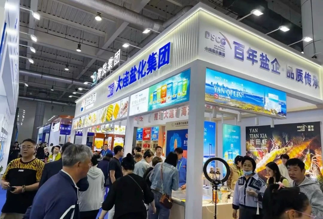 步入大連世界博覽廣場(chǎng),獐子島集團(tuán)與大連鹽化集團(tuán)作為大連獐子島海洋發(fā)展集團(tuán)的成員企業(yè),聯(lián)合打造了融合海洋文化與海洋產(chǎn)品的特裝展位,在眾多展位中脫穎而出,吸引了絡(luò)繹不絕的參觀者。獐子島集團(tuán)帶來(lái)了琳瑯滿目的源刺參、扇貝、鮑魚等海洋食品,而大連鹽化集團(tuán)的鹽田蝦與海鹽系列產(chǎn)品同樣備受關(guān)注。