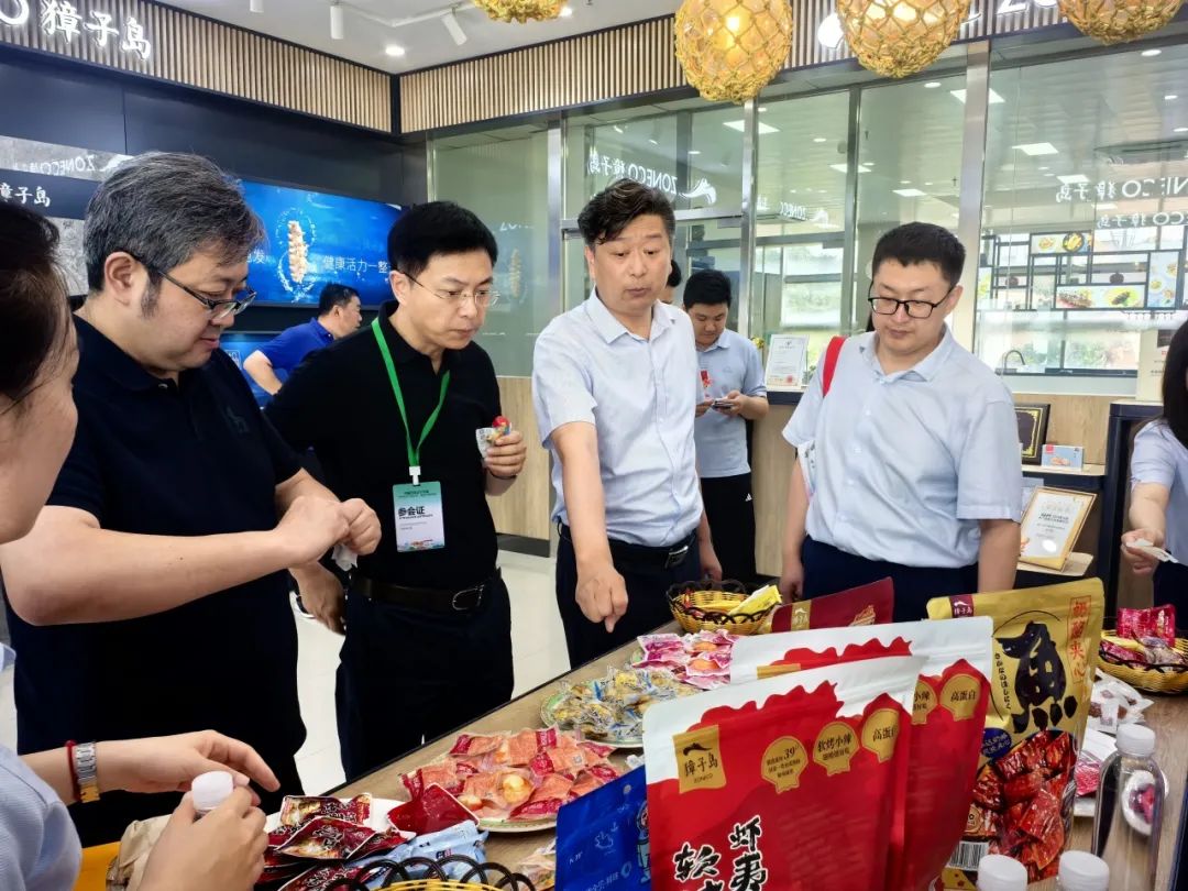大會(huì)結(jié)束后,在獐子島集團(tuán)股份有限公司董事路珂和副總裁劉明的陪同下,與會(huì)領(lǐng)導(dǎo)和嘉賓前往獐子島集團(tuán)金貝廣場(chǎng)進(jìn)行參觀(guān)考察。大家先后參觀(guān)了休閑食品生產(chǎn)車(chē)間、海參加工車(chē)間,詳細(xì)了解了獐子島品牌源刺參系列產(chǎn)品、預(yù)制食品和休閑食品等,并就進(jìn)一步深化央地合作、推動(dòng)遼品出遼,與企業(yè)進(jìn)行了深入座談交流。