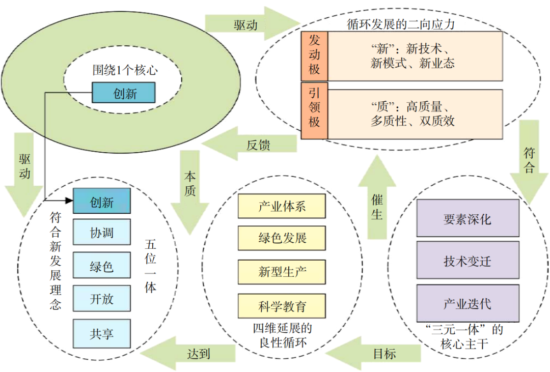 由技術(shù)革命性突破、生產(chǎn)要素創(chuàng)新性配置、產(chǎn)業(yè)深度轉(zhuǎn)型升級而催生,以勞動者、勞動資料、勞動對象及其優(yōu)化組合的躍升為基本內(nèi)涵,以全要素生產(chǎn)率大幅提升為核心標(biāo)志,特點(diǎn)是創(chuàng)新,關(guān)鍵在質(zhì)優(yōu),本質(zhì)是先進(jìn)生產(chǎn)力(圖1)。