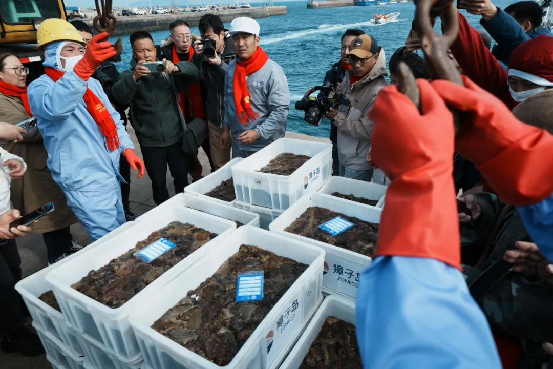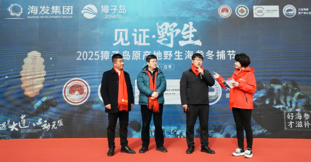 初冬時(shí)節(jié),碧海歡歌。11月7日,正值“立冬”節(jié)氣,在北緯39°黃金海域——遼寧大連長(zhǎng)山群島最南端的獐子島鎮(zhèn),“見(jiàn)證·野生——2025獐子島原產(chǎn)地野生海參冬捕節(jié)”正式啟幕,現(xiàn)場(chǎng)鑼鼓喧天,海騰人歡,洋溢著豐收的喜悅。大連獐子島海洋發(fā)展集團(tuán)總經(jīng)理張昱,長(zhǎng)海縣委常委、副縣長(zhǎng)、獐子島鎮(zhèn)黨委書(shū)記張盛族,大連市文化和旅游局副局長(zhǎng)劉磊,中綠華夏有機(jī)產(chǎn)品認(rèn)證中心主任欒治華,大連市現(xiàn)代農(nóng)業(yè)生產(chǎn)發(fā)展服務(wù)中心副主任趙宇,通標(biāo)標(biāo)準(zhǔn)技術(shù)服務(wù)有限公司大連分公司東北區(qū)農(nóng)產(chǎn)食品部經(jīng)理劉守峰,大連市海洋漁業(yè)協(xié)會(huì)會(huì)長(zhǎng)李克詩(shī),以及獐子島集團(tuán)總裁路珂等領(lǐng)導(dǎo)出席活動(dòng)。來(lái)自全國(guó)各地的嘉賓、經(jīng)銷商伙伴、主流媒體代表及網(wǎng)紅主播等300余人共同見(jiàn)證這一海洋盛事的開(kāi)啟。