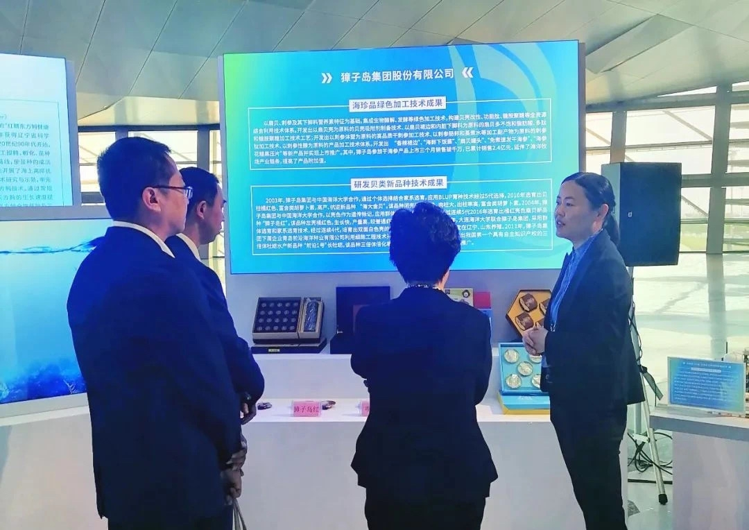 獐子島集團(tuán)作為水產(chǎn)行業(yè)唯一參展企業(yè),展示了在國(guó)家貝類(lèi)水產(chǎn)新品種研發(fā)和海珍品綠色加工方面的科技成果?!昂4蠼鹭悺?、“獐子島紅”、“明月貝”蝦夷扇貝以及青島前沿種業(yè)公司研發(fā)的“前沿1號(hào)”長(zhǎng)牡蠣四個(gè)國(guó)家水產(chǎn)新品種已實(shí)現(xiàn)產(chǎn)業(yè)推廣;“免煮速發(fā)干海參”、“海鮮下飯醬”、“扇貝罐頭”、“休閑食品”等深加工及預(yù)制菜產(chǎn)品在市場(chǎng)上也廣受消費(fèi)者歡迎。展會(huì)期間,公司科研人員還與多家院所專(zhuān)家圍繞海洋牧場(chǎng)建設(shè)及海鮮預(yù)制菜進(jìn)行了技術(shù)交流。