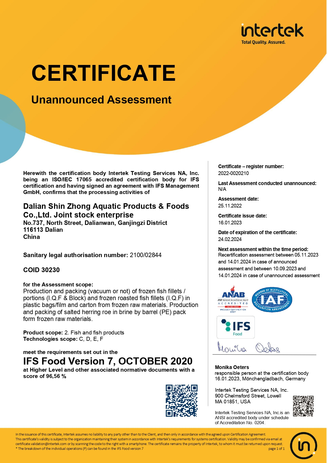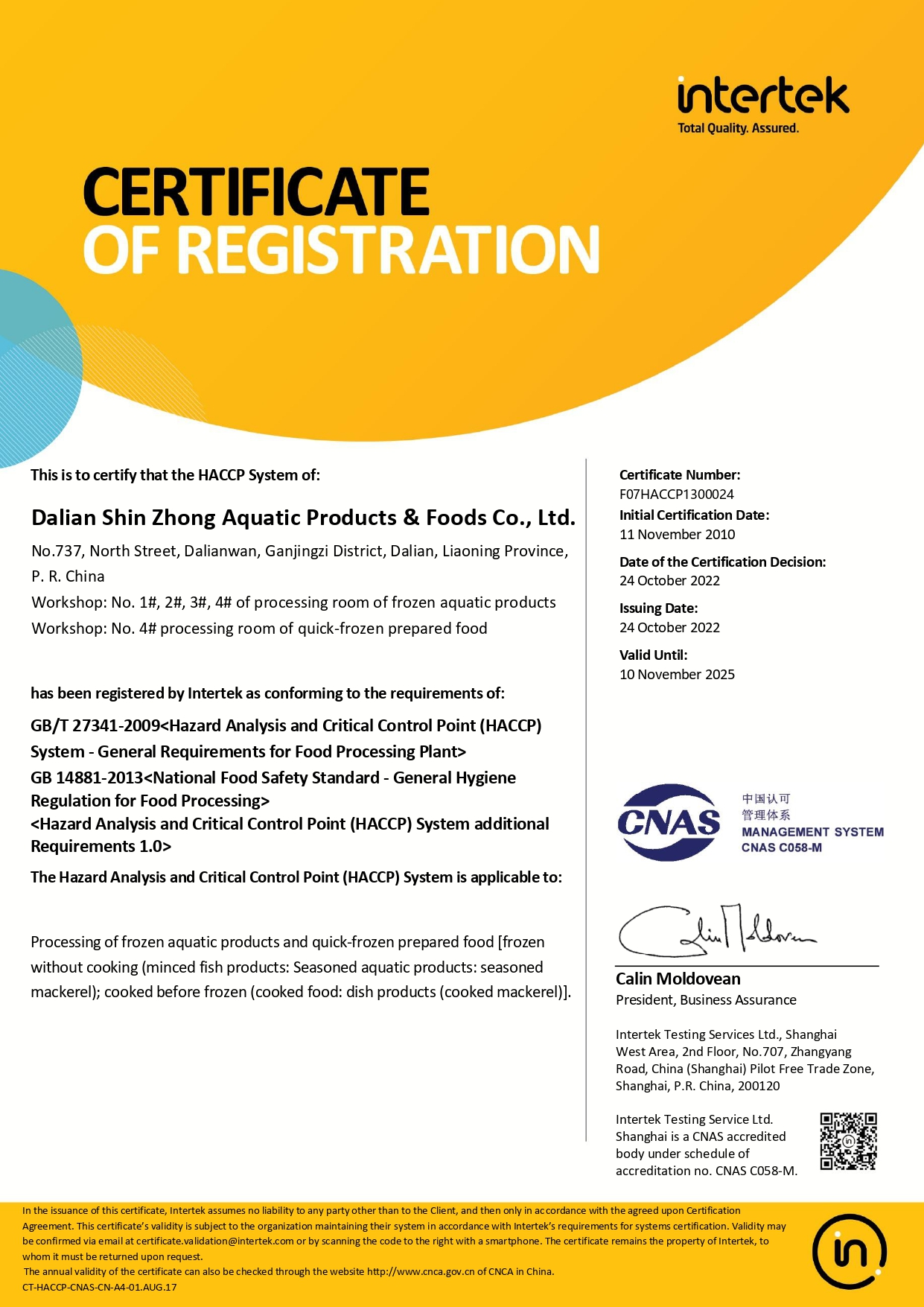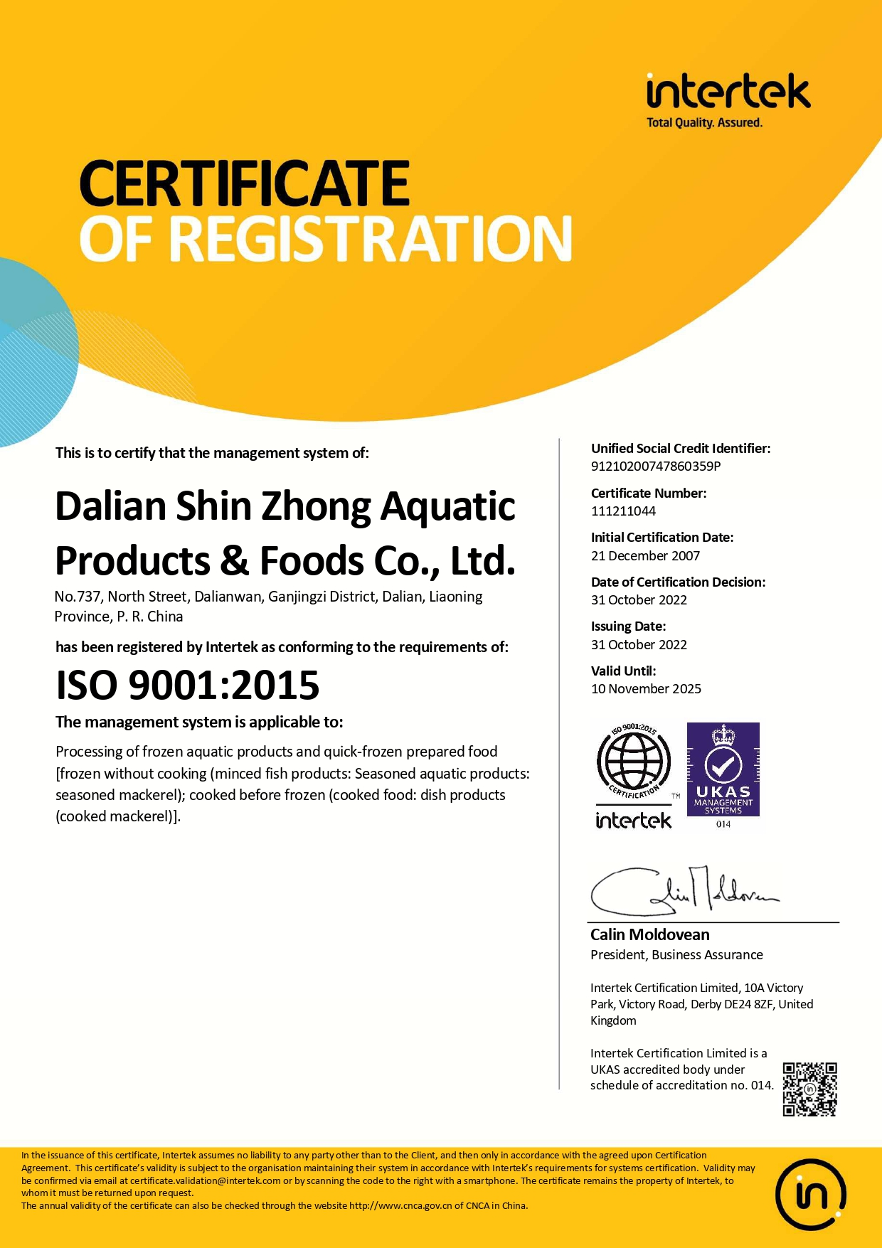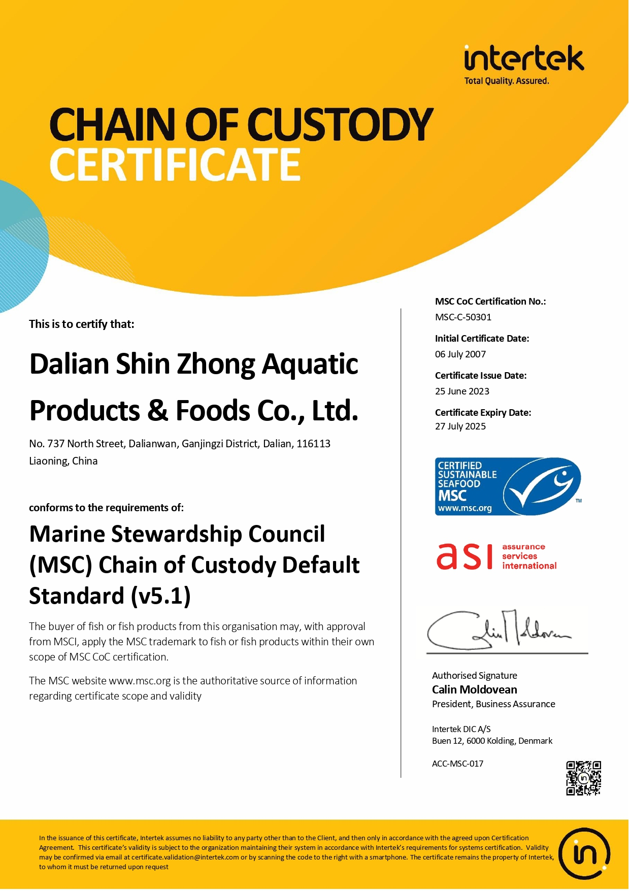 Dalian Shinzhong Aquatic ProductS&Foods Co., Ltd.